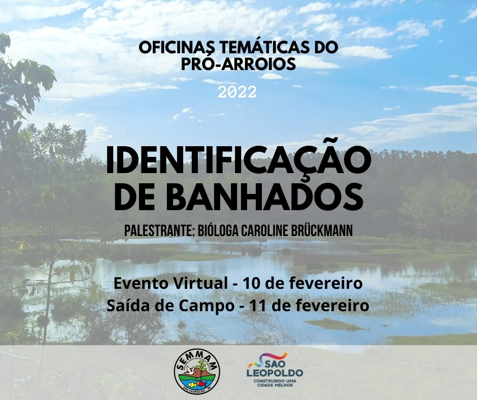 A Secretaria Municipal do Meio Ambiente (Semmam), através do Departamento de Áreas Protegidas e Parques Ambientais (Deappa) e inserida no Programa de Preservação Hídrica e das Sub-bacias (Pró-Arroios), realizará a primeira edição das oficinas temáticas no ano de 2022. O workshop tratará de identificação de banhados e ocorrerá de maneira virtual, no dia 10 de fevereiro às 18h30, com saída para campo no dia 11, das 8h30 às 9h30.